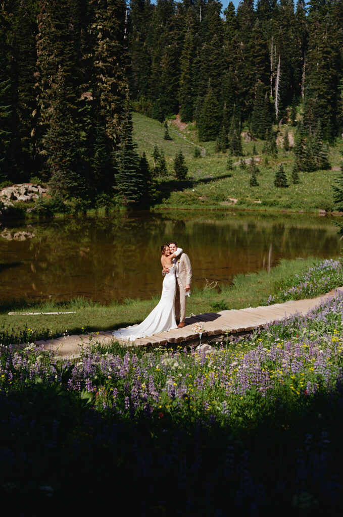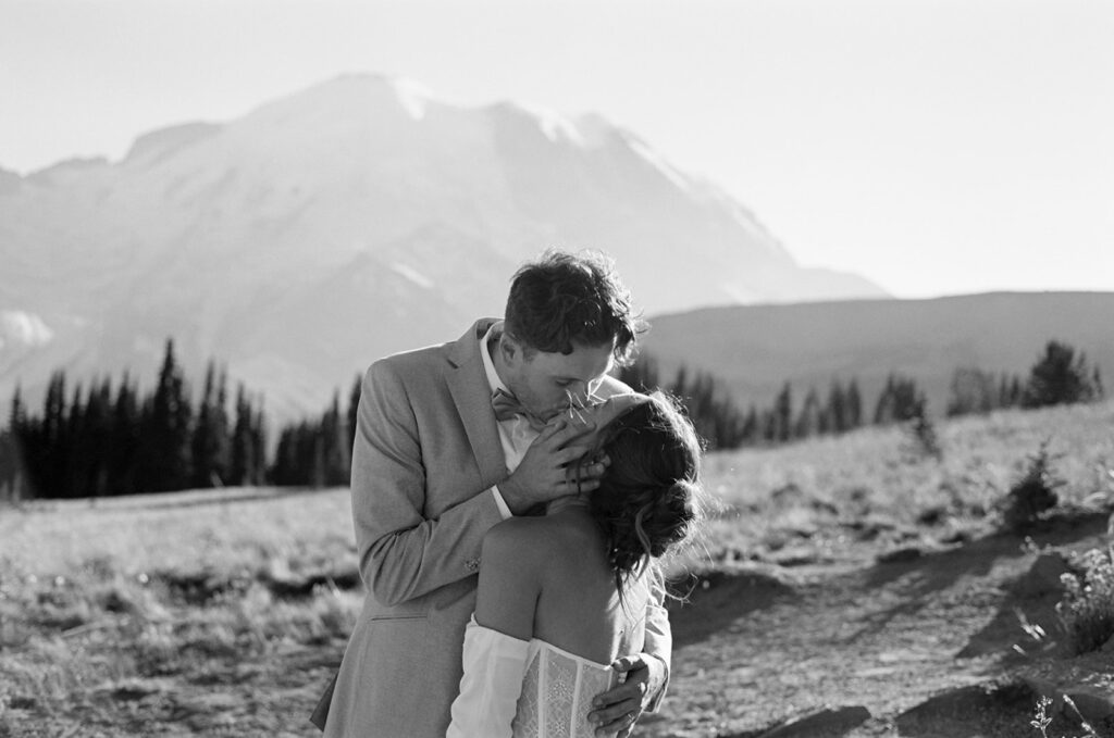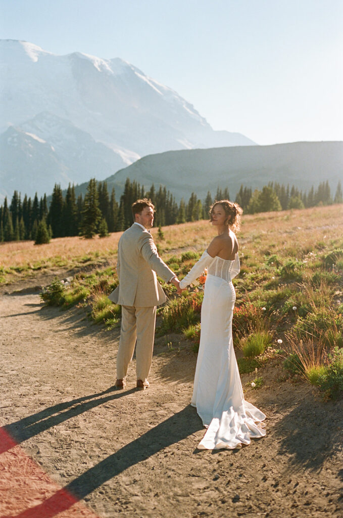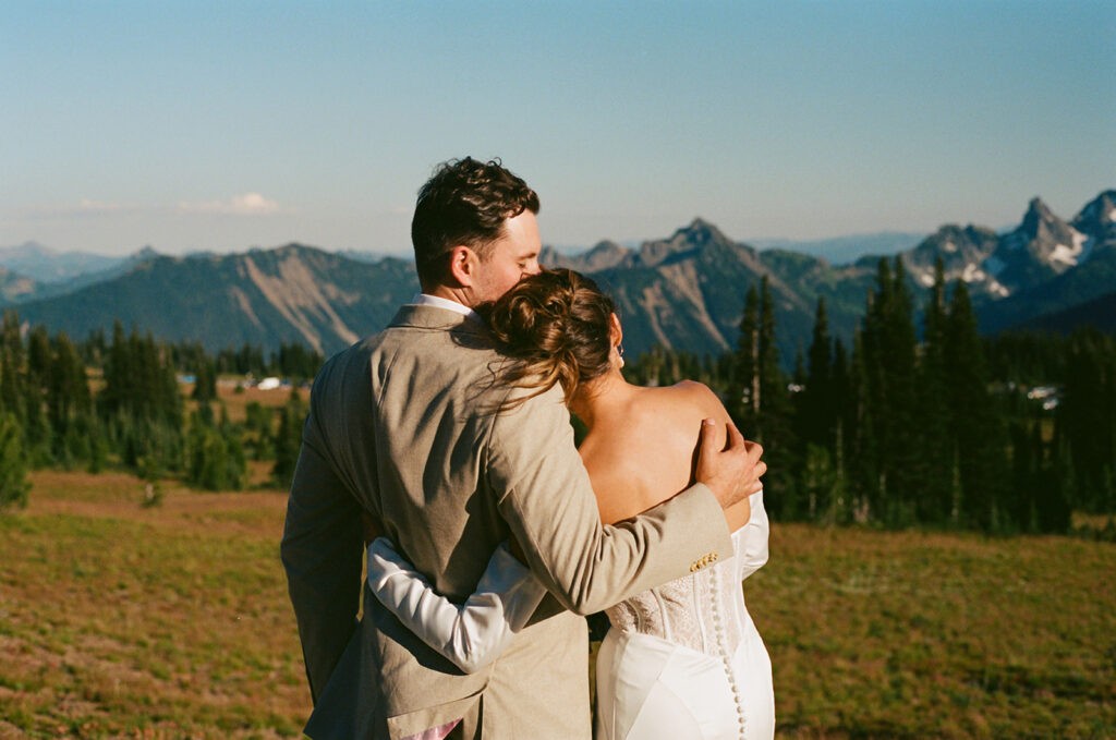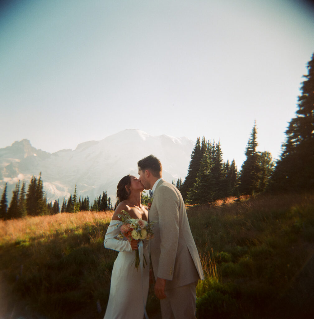 Photographed using a blend of 35mm film, 120 medium format film, and digital photography, their Mount Rainier summer elopement unfolds as a visual narrative — one shaped by a documentary and photojournalistic approach with an editorial sensibility.