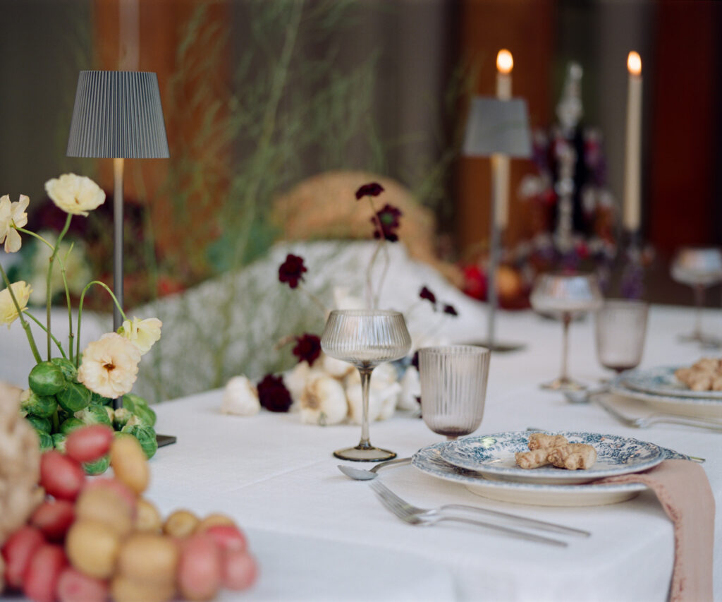 Image Caption: Styled tabletop vignette photographed on 120- film — editorial details and lush textures make each frame feel intentional.